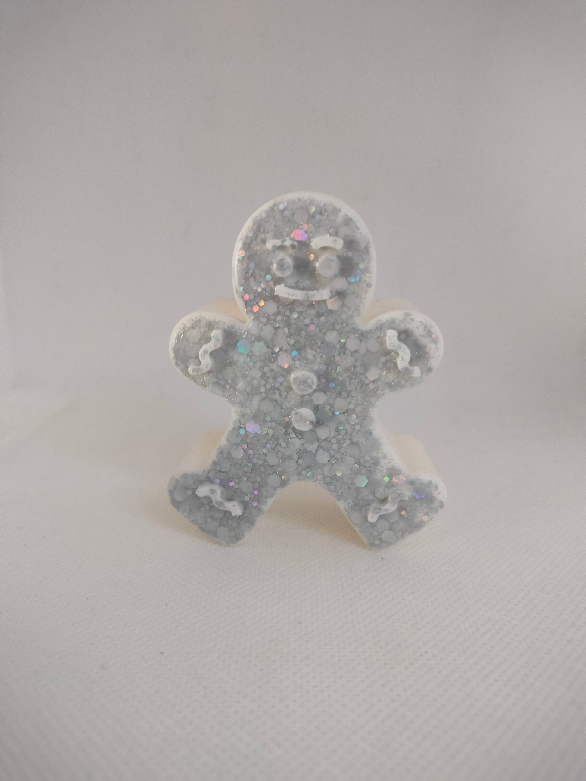 Figurine bonhomme pain d'épice blanc avec des paillettes grise holographique