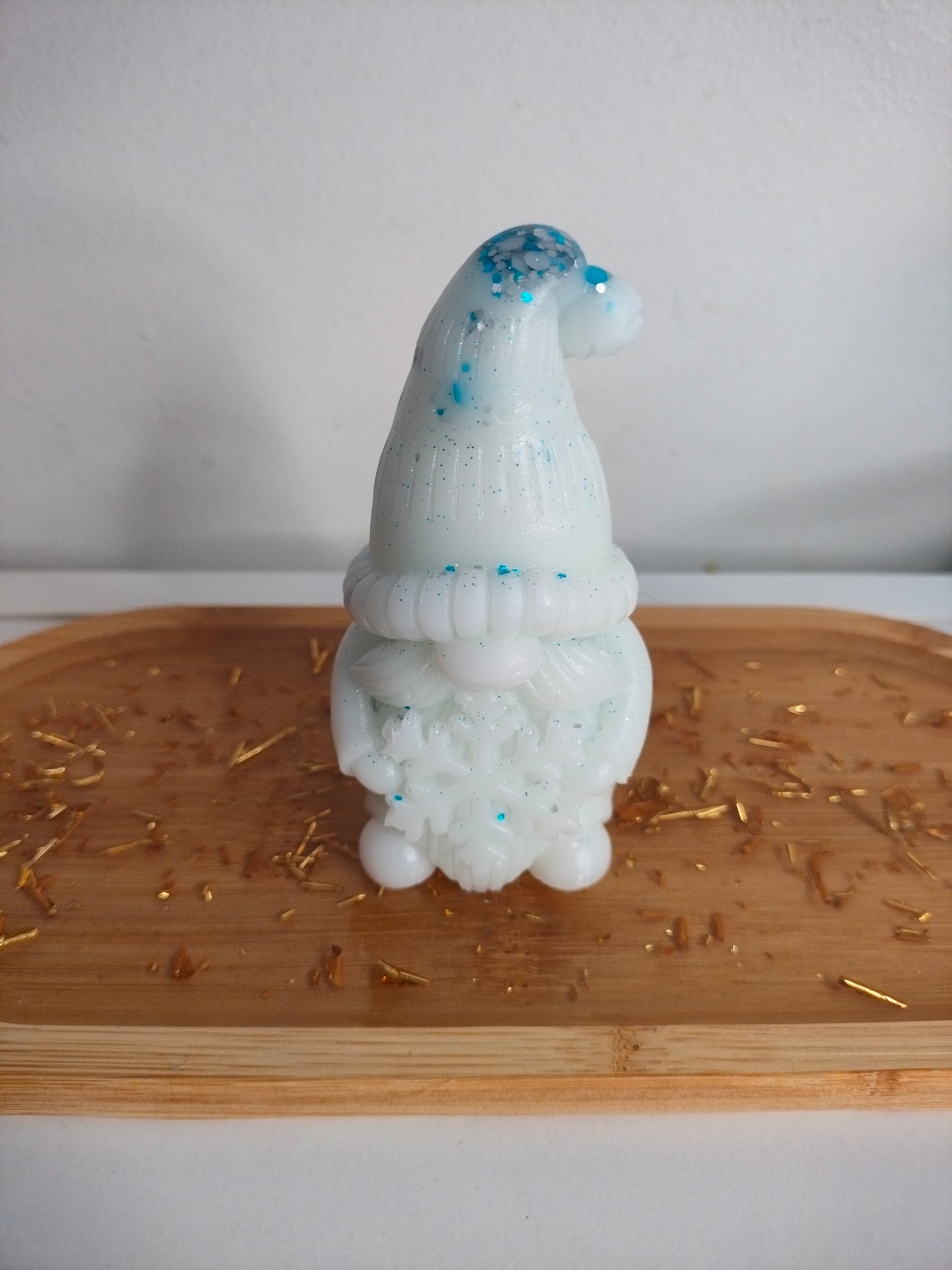 Figurine gnome tenant un flocon de neige blanc avec un mélange de paillettes