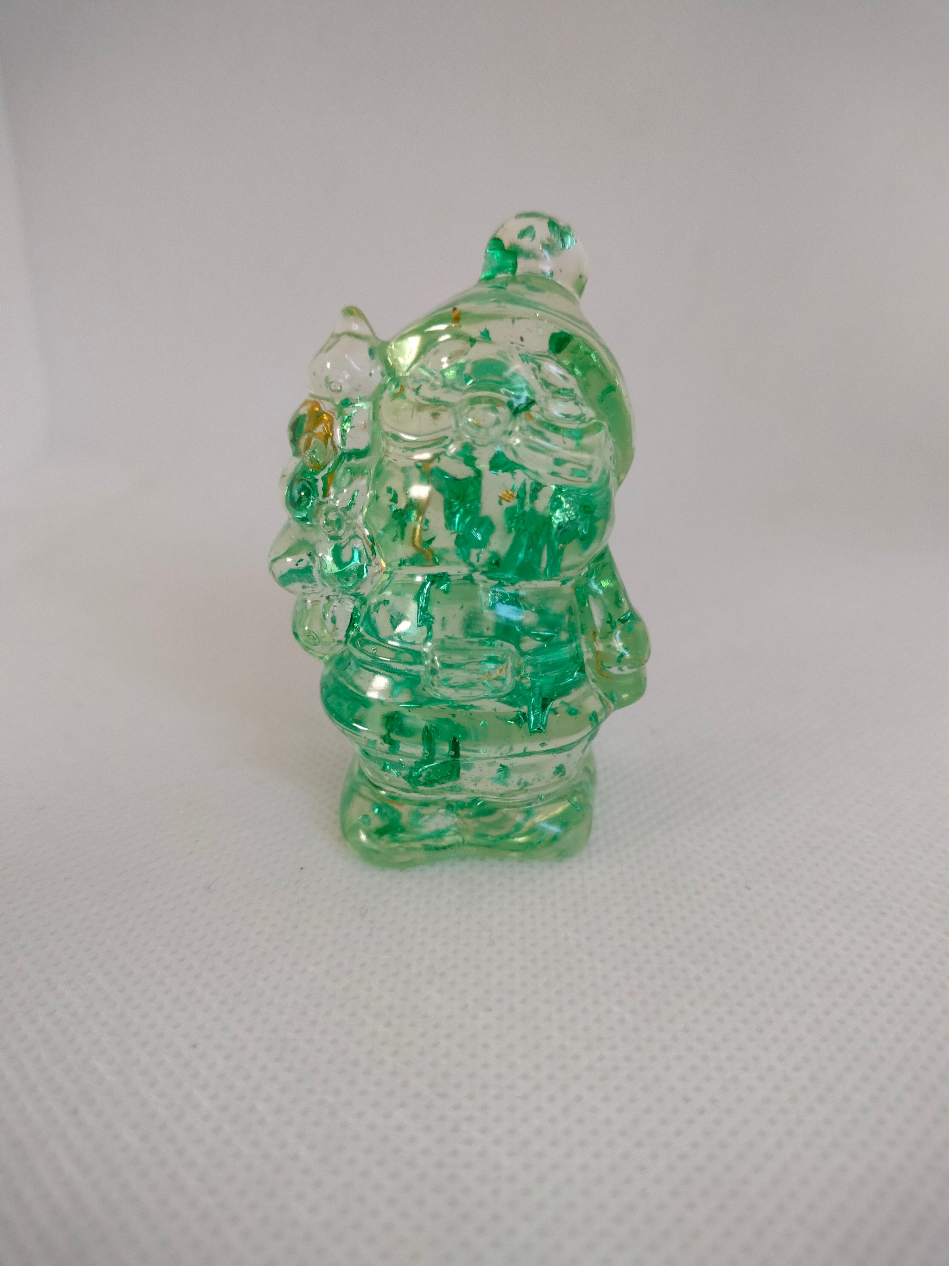 Figurine mini père noël transparent avec des feuilles d'or et vertes
