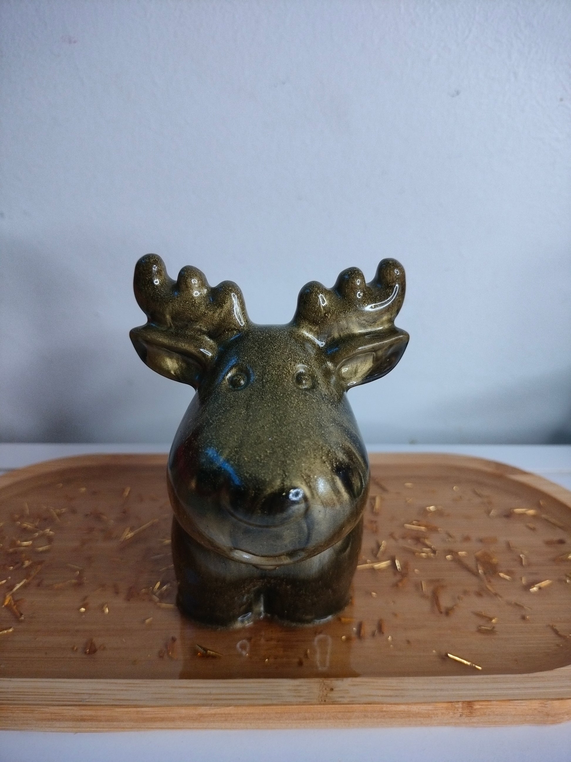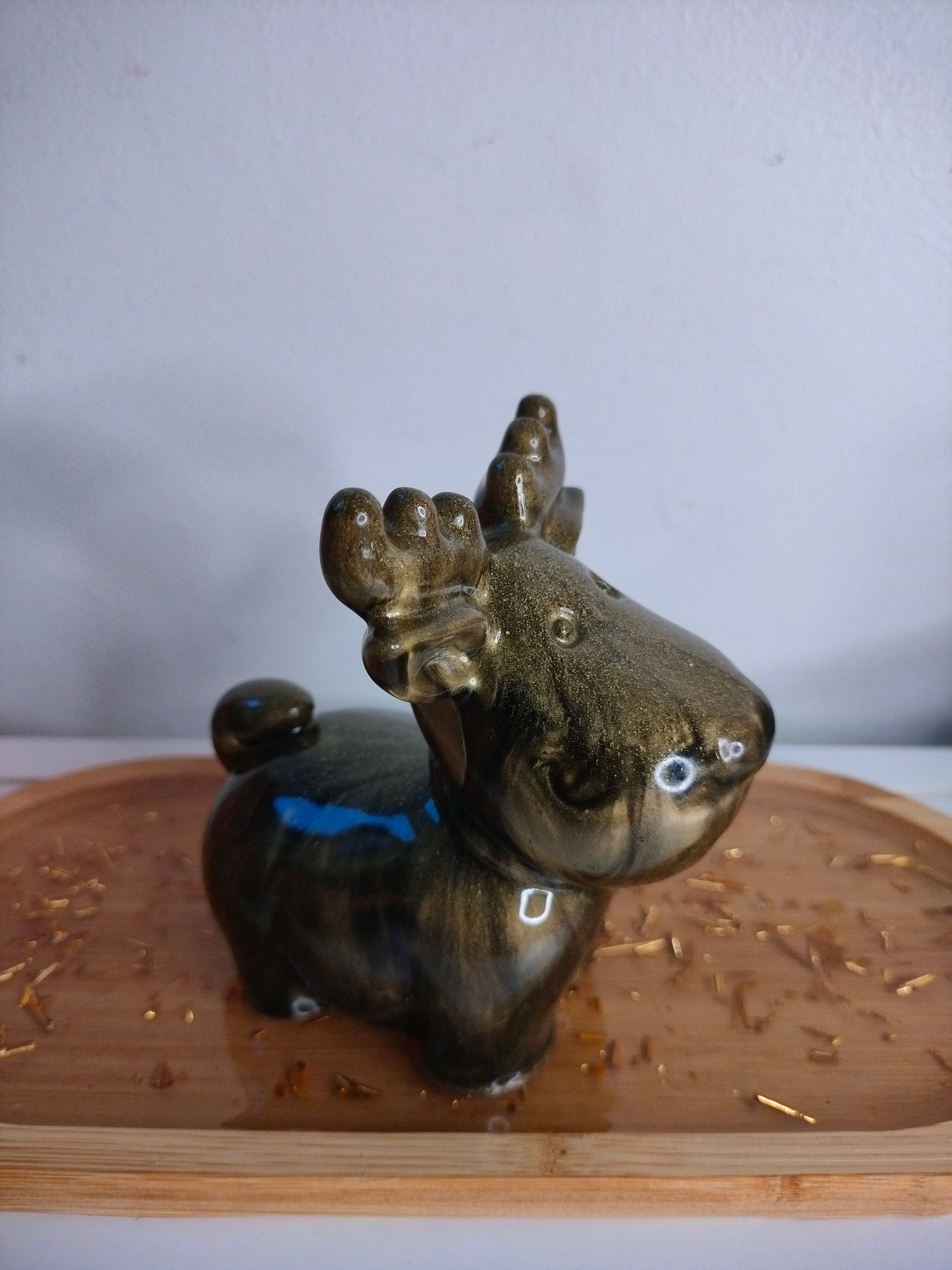Figurine renne noir avec un effet marbré or