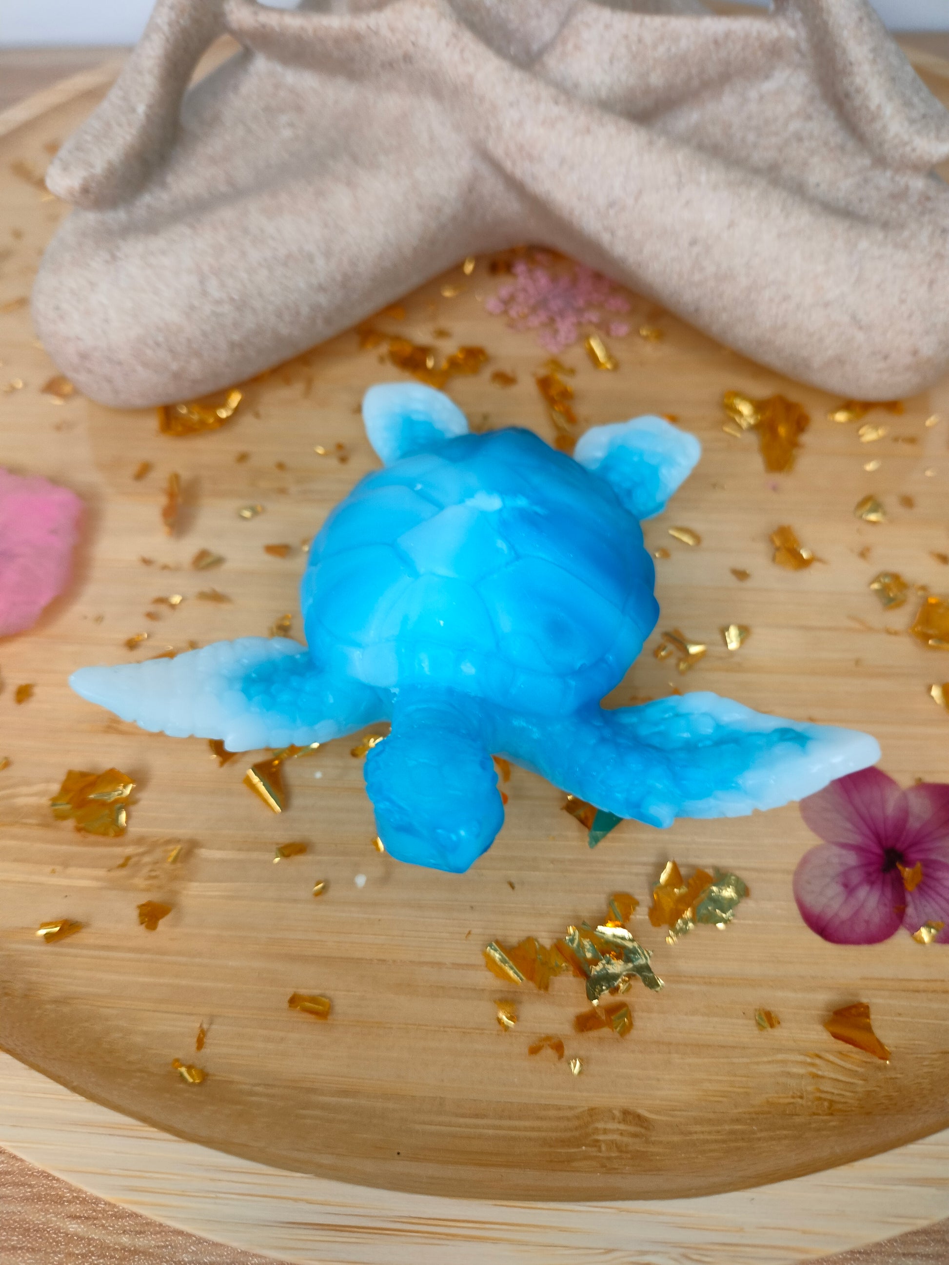 Figurine tortue bleue et blanche