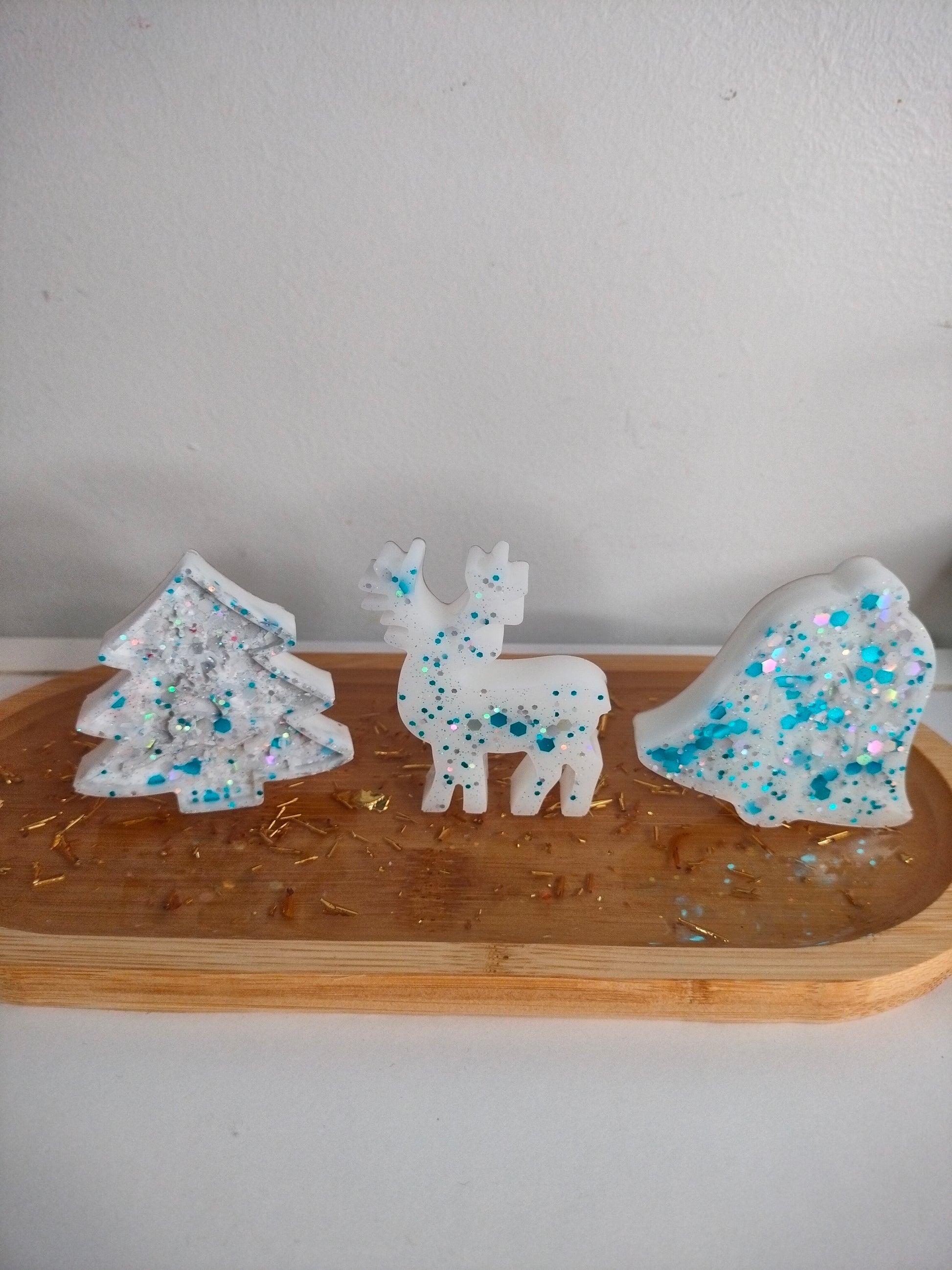 Lot de 3 décorations de table blanc avec un mélange de paillettes comprenant : 1 , 1 et 1 cloche