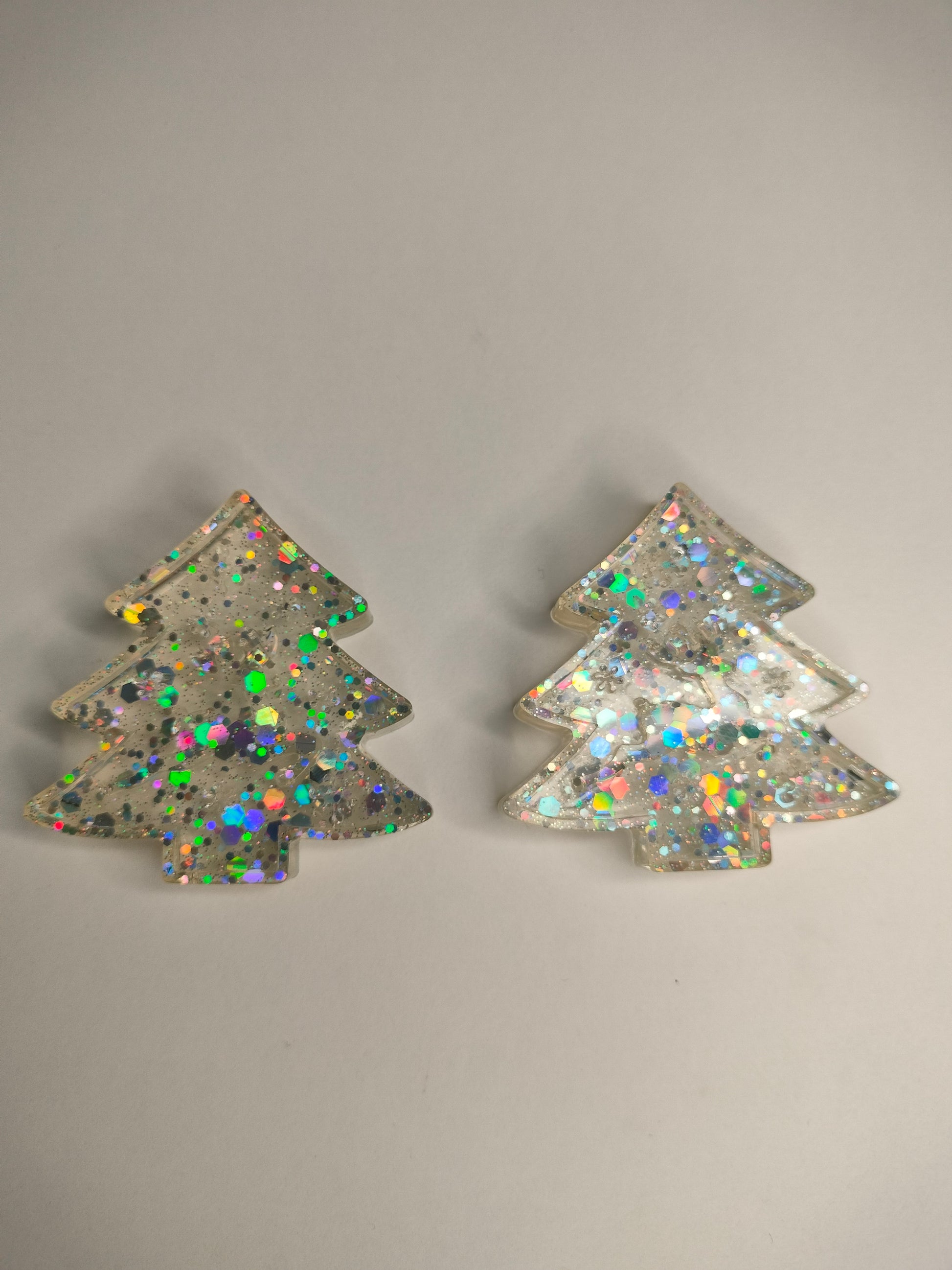 Lot de 2 décorations de table en forme de sapin avec des paillettes holographiques.