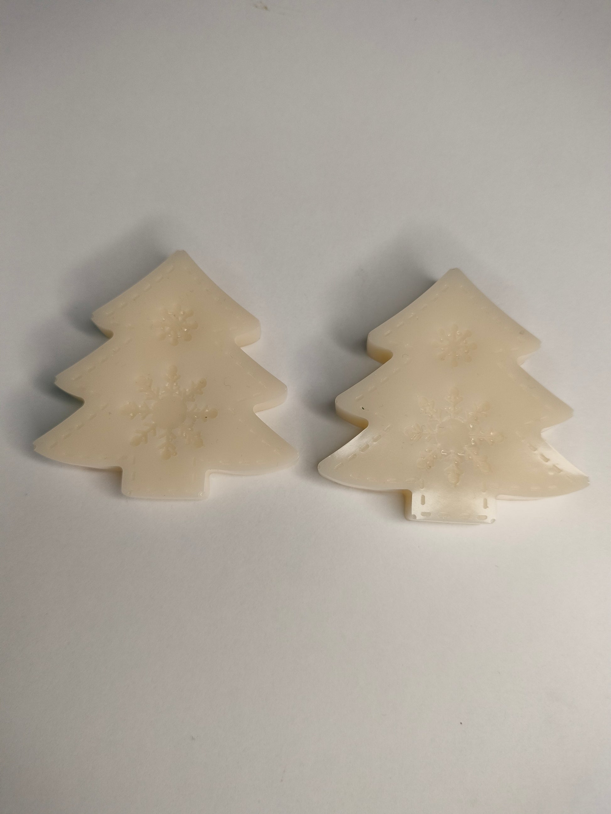 Lot de 2 décorations blanc chaud en forme de sapin avec des flocons.