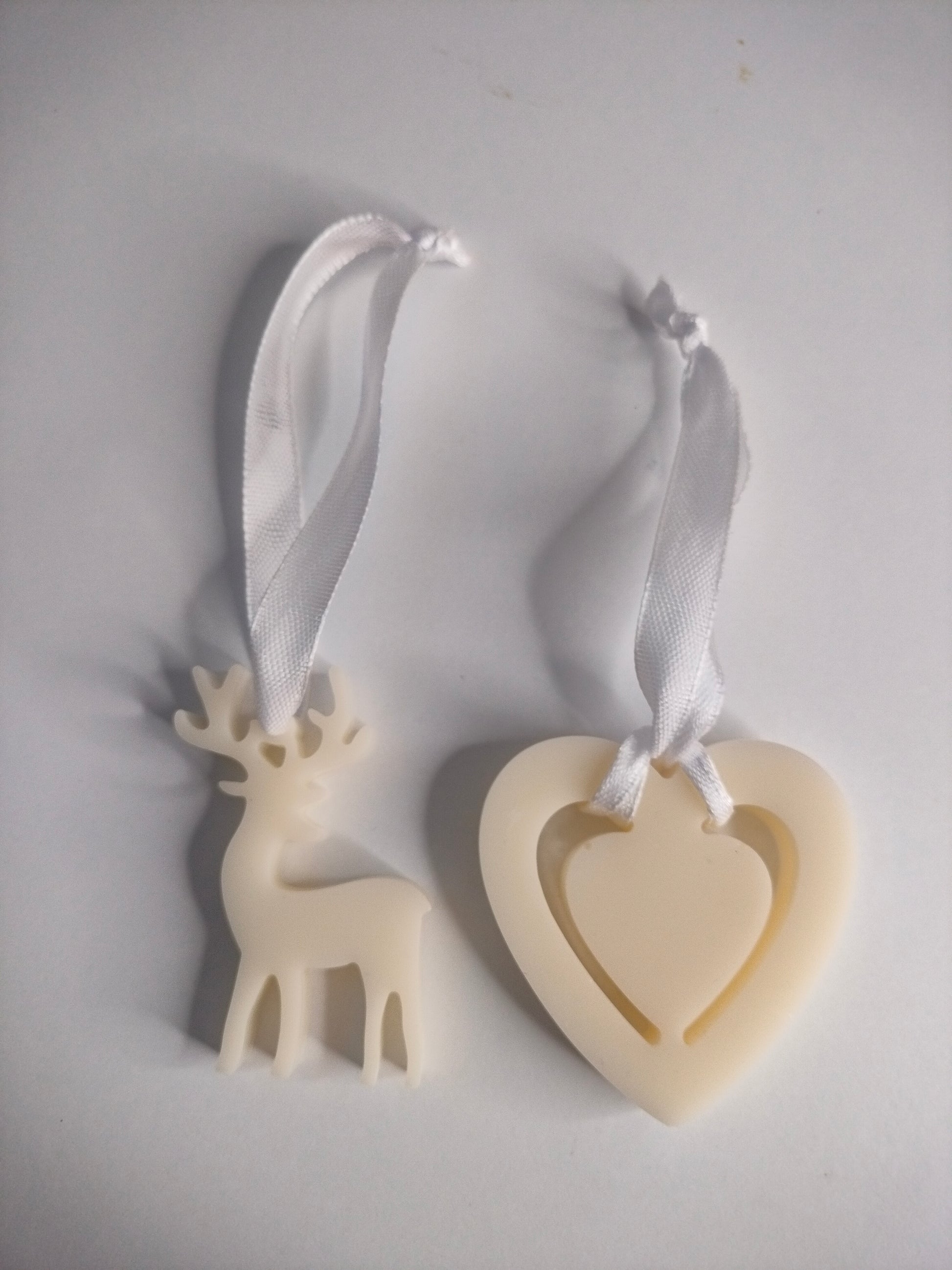 Lot de 2 suspensions de noël blanc chaud comprends : 1 renne et 1 cœur.