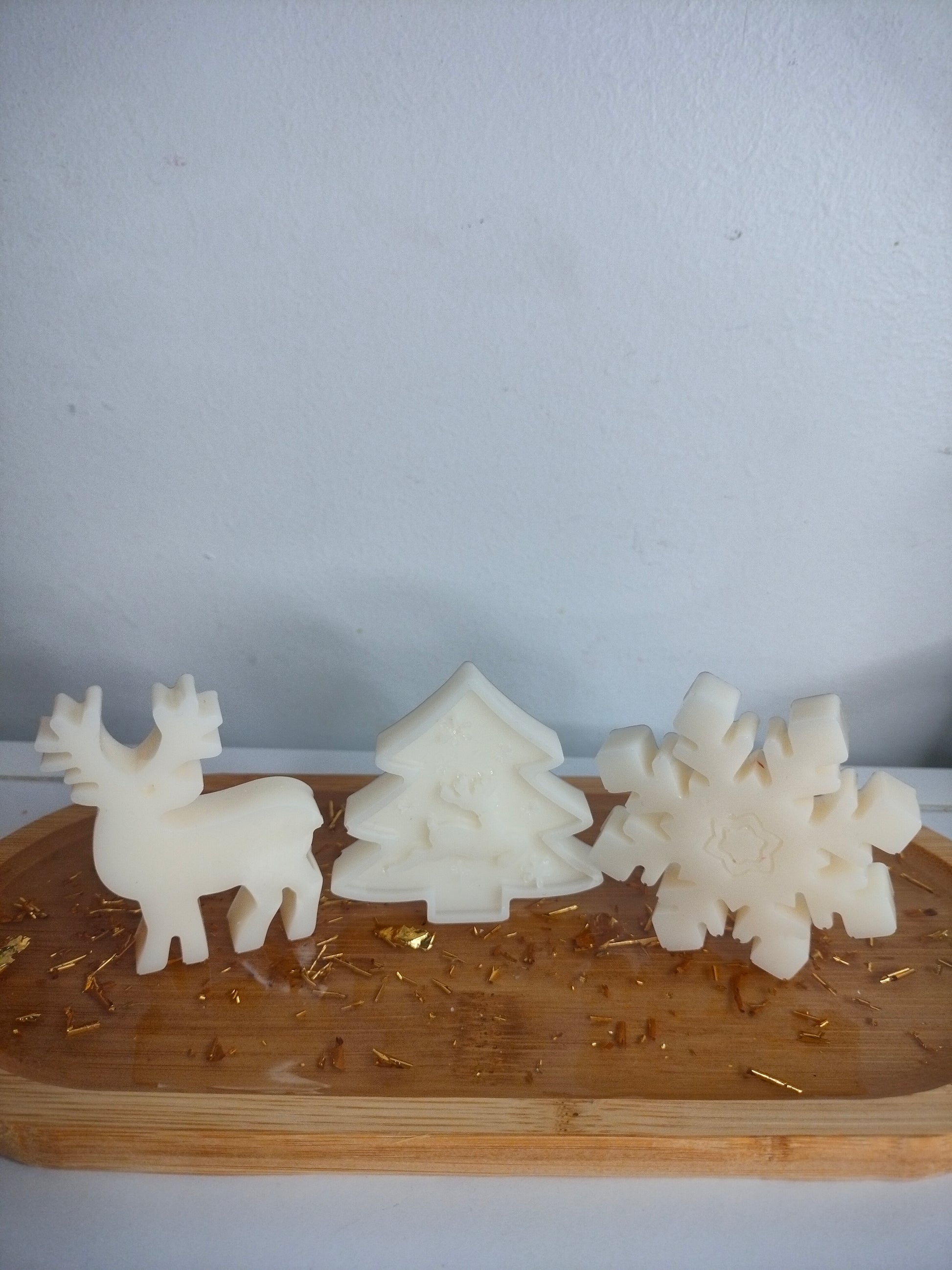 Lot de 3 décorations de table blanc chaud comprenant : 1 sapin renne ,1 flocon de neige et 1 renne.