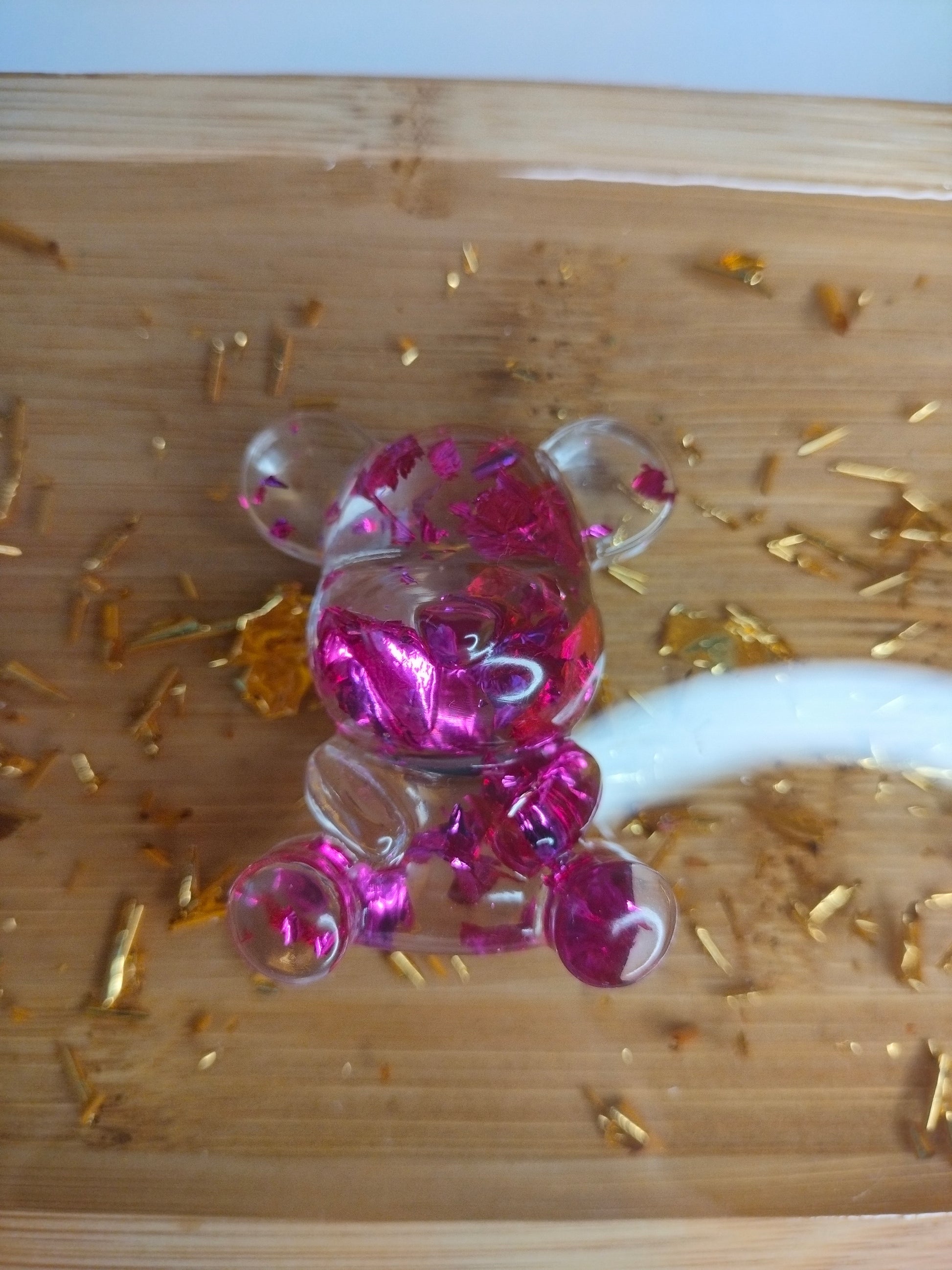 Magnet moyen ours transparent avec des feuilles roses fushia