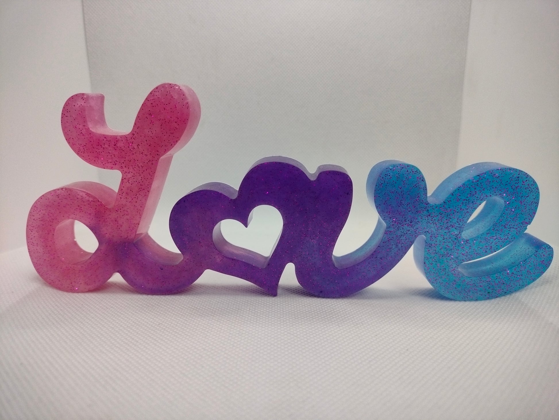 Love sur le thème galaxi, rose bleu et violet avec des paillettes.