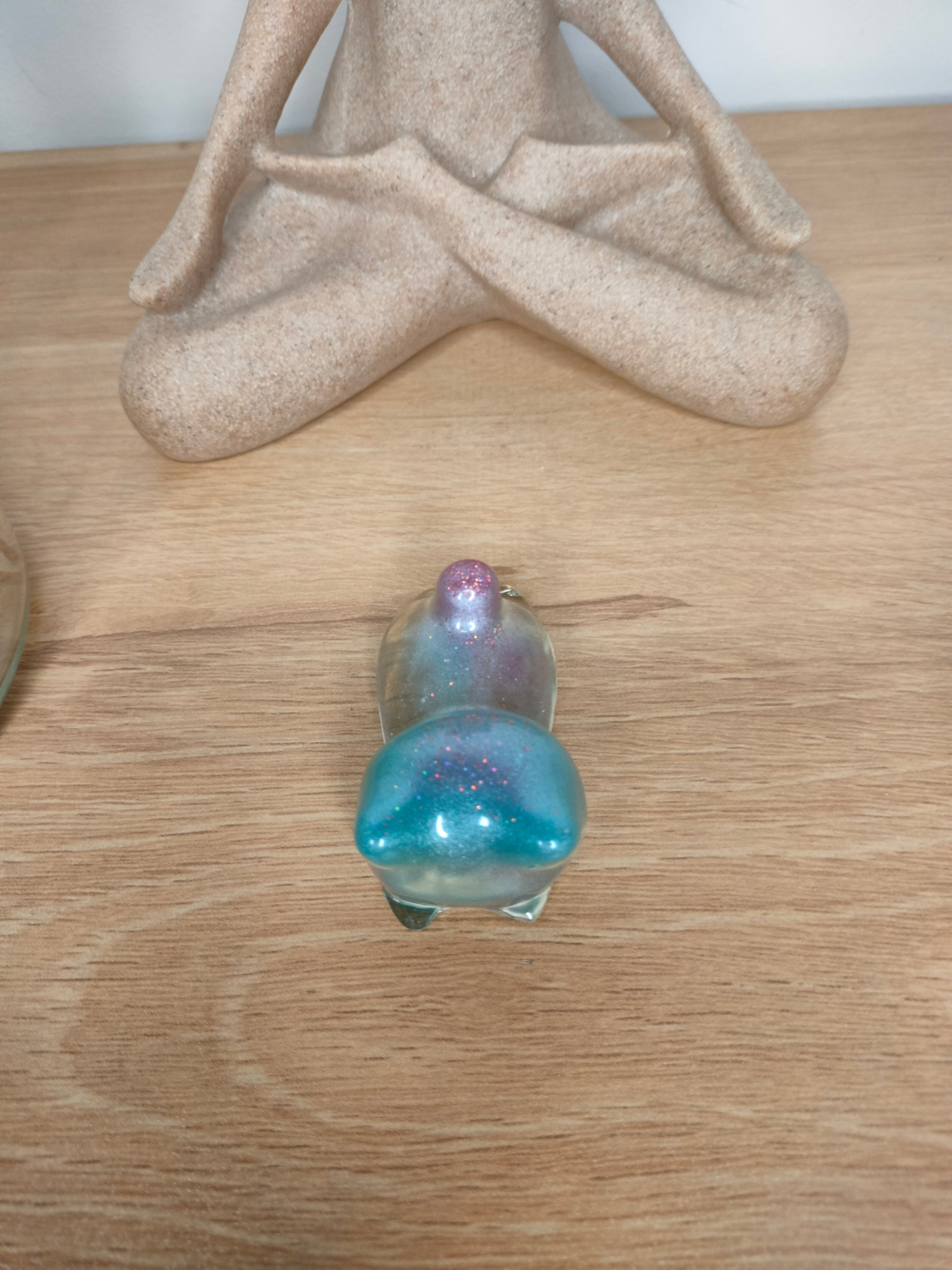 Petit chat transparent , bleu et rose