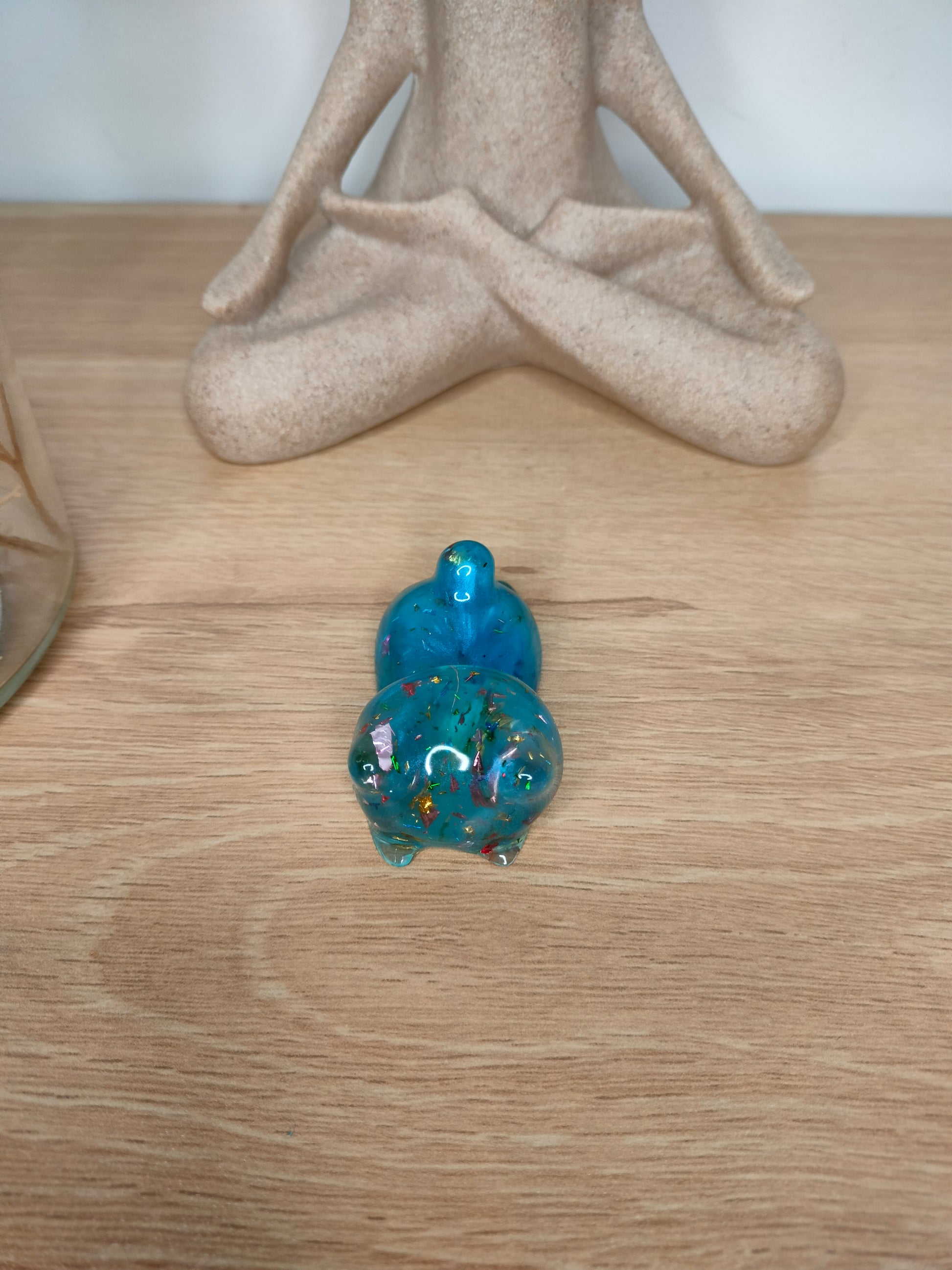 Petit chat bleu et transparent avec un mélange de feuilles de couleurs