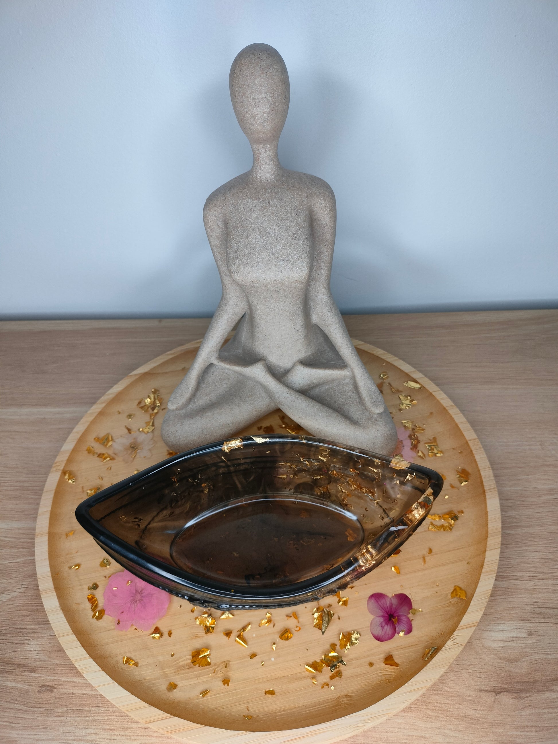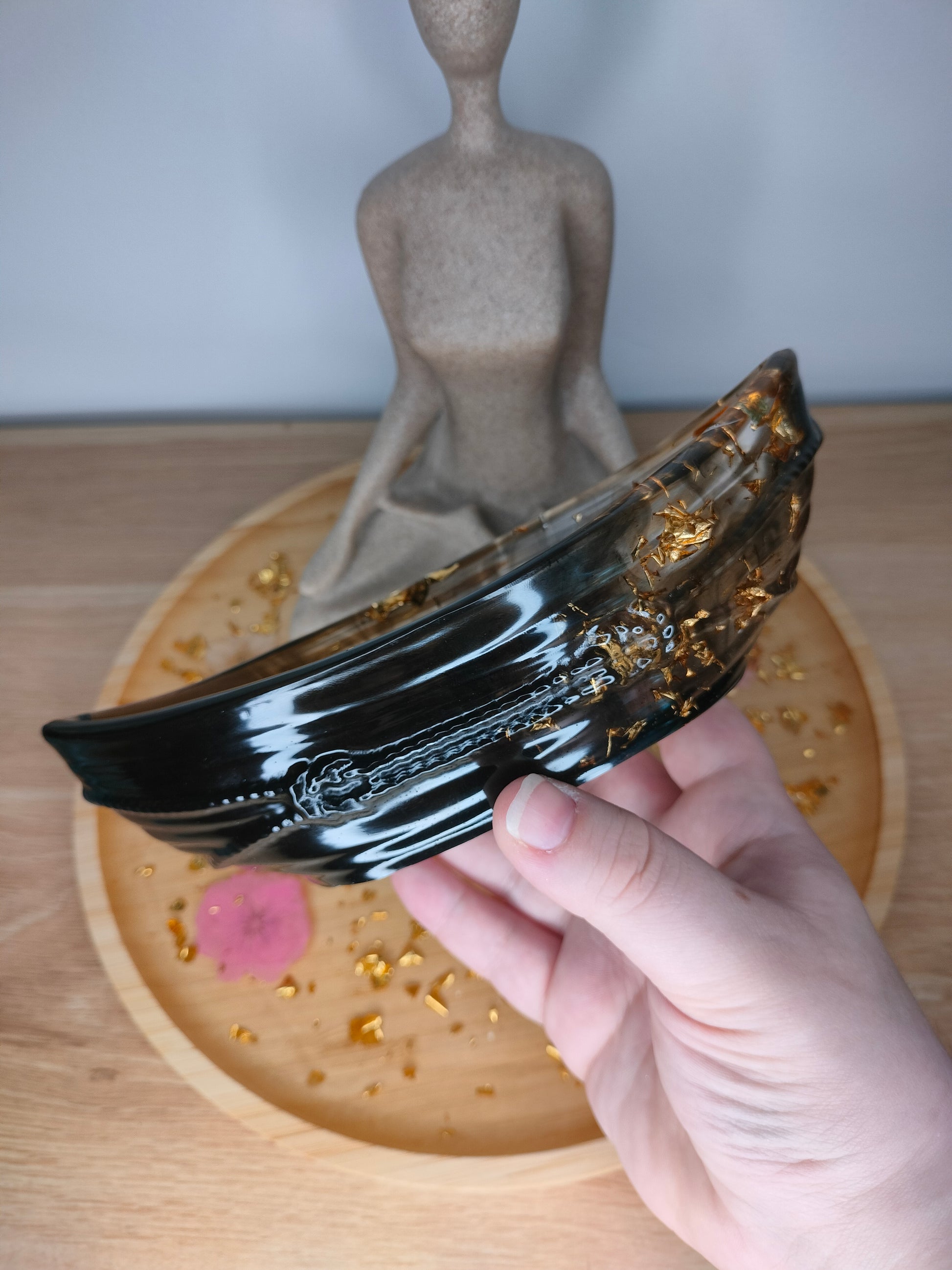 Vide-poches bateau effet marin noir et transparent avec des feuilles d'or